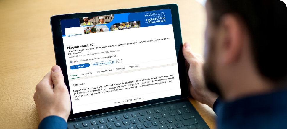 En Nippon Koei LAC cada colaborador aporta su experiencia, visión y compromiso, contribuyendo a un equipo diverso que se extiende por once países y conecta múltiples culturas, acentos y formas de ver el mundo. Nuestra fuerza está en las personas: en quienes dedican su tiempo, su talento y su pasión para hacer realidad proyectos que dejan huella.